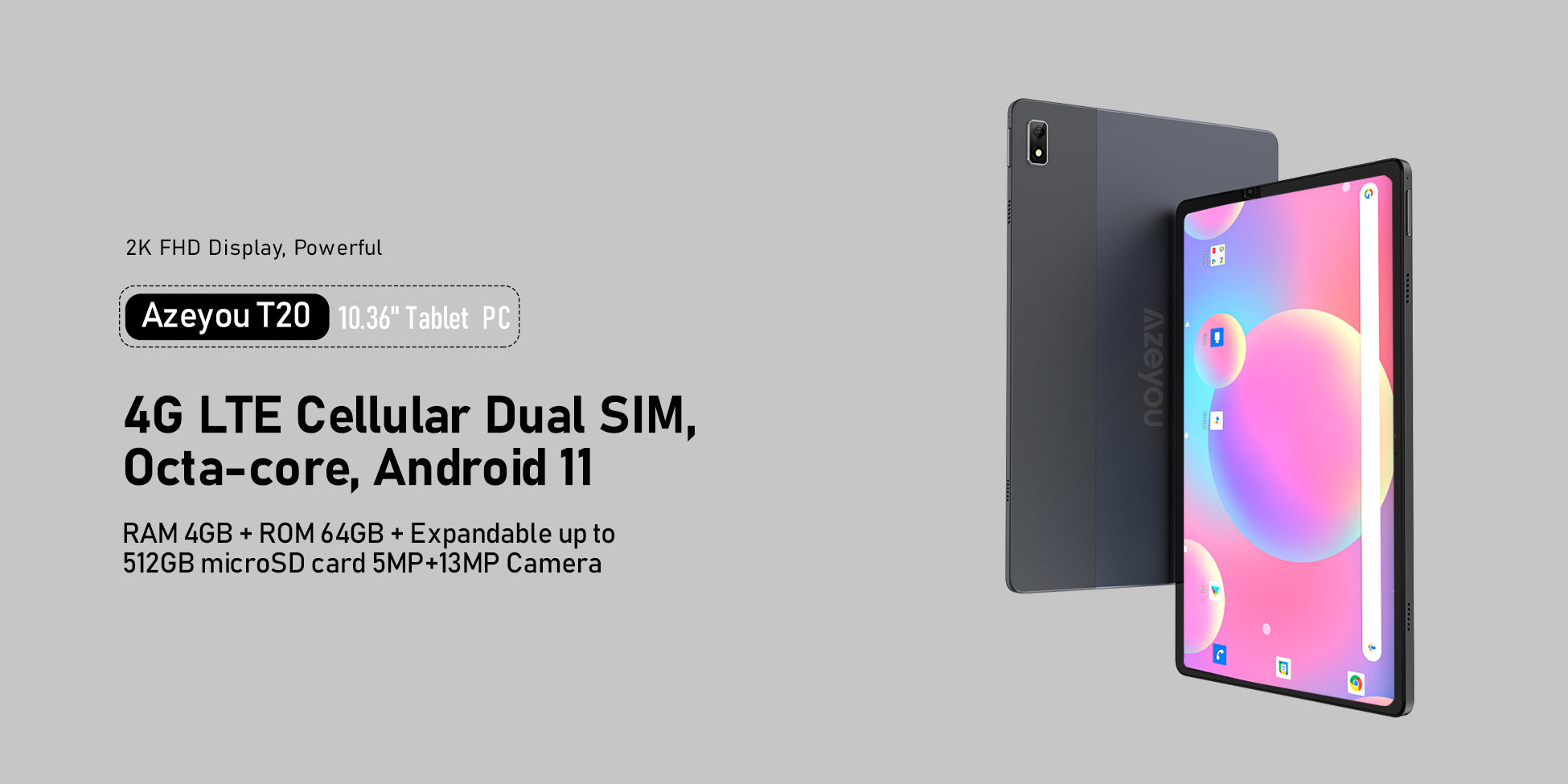 10.36 inch 4G LTE Android 11 Tablet with 4GB+64GB, Octa-core, IPS 2K Display, T20 USB-C WiFi Tablet