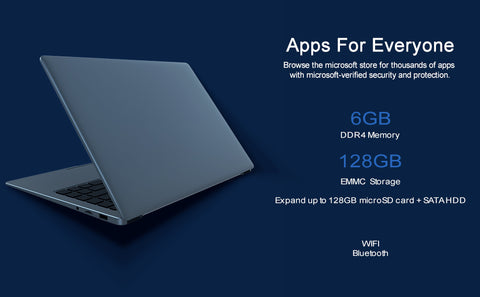 【Supports SATA HDD & SD Card】 The Laptop comes with 6GB RAM and 128GB of on-board eMMC storage with the option to expand the memory up to 128GB with a Micro SD card or Insert a SATA HDD and increase the internal storage immediately.